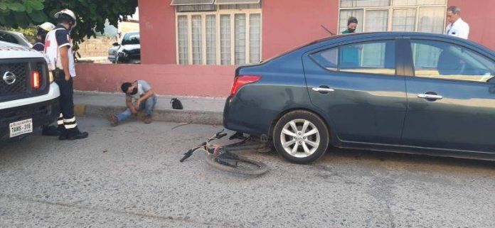 Tremendo golpe en la cabeza se dio un ciclista luego de omitir un señalamiento de alto y estrellarse contra la parte lateral de una camioneta.