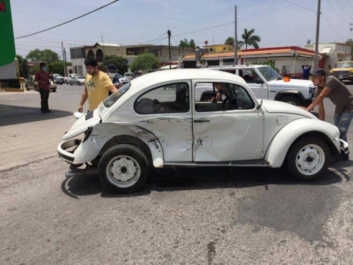 Presuntamente al llegar al cruce con el Eje Vial rebasó el límite de alto y terminó proyectándose contra el costado derecho de un vehículo Volkswagen tipo escarabajo.