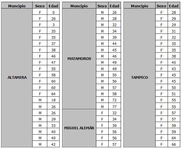 Precisó que los casos se distribuyen geográficamente en los siguientes municipios: