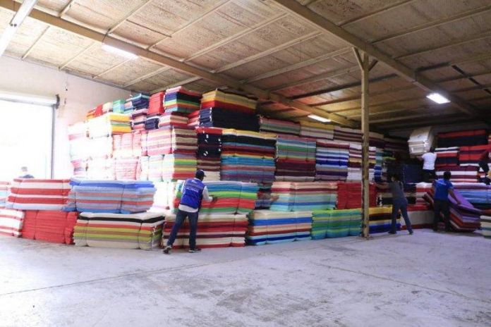 En suma, a los municipios afectados llegarán 40 mil 505 colchonetas, 276 mil litros de agua embotellada, 10 mil 126 despensas, 40 mil 505 cobertores, 10 mil 126 paquetes de limpieza para el hogar e igual número de paquetes de aseo personal.