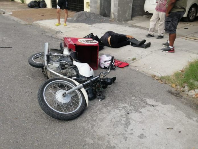 Debido al fuerte impacto el repartidor salió proyectado resultando con probable fractura de una de sus extremidades inferiores.