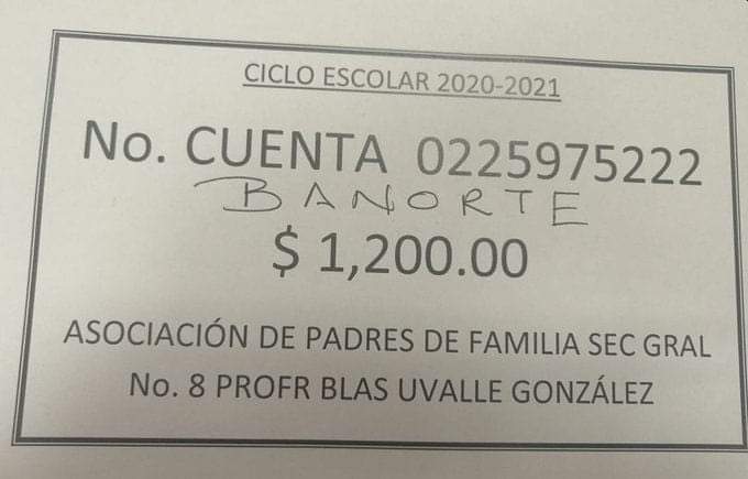Otra de los planteles es la Secundaria General Número 8, Profesor Blas Uvalle, donde la cantidad a cobrar es de mil 200 pesos.