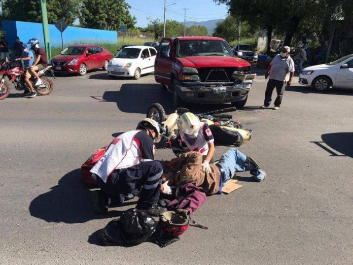 Paramédicos de Cruz Roja acudieron hasta el lugar de los hechos para valorar al motociclista quién presentaba golpes en la mayor parte del cuerpo y cabeza sin embargo le explicaron que no era necesario su traslado a un hospital.