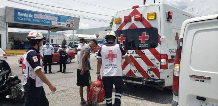Hasta el lugar de los hechos acudieron paramédicos de Cruz Roja Delegación Victoria para valorar al motociclista.