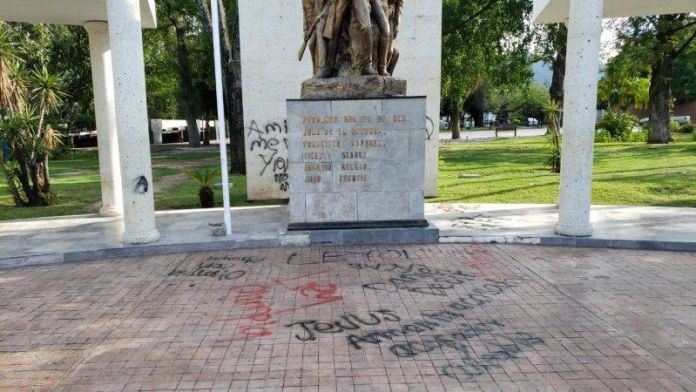 cdVictoria. – En protesta por no haber sido escuchadas para la elaboración de la llamada «Ley Olimpia» aprobada este día por el Congreso del Estado, esta tarde un grupo de aproximadamente 30 mujeres vandalizaron el monumento a los Niños Héroes escribiendo diversos mensajes con pintura en aerosol.