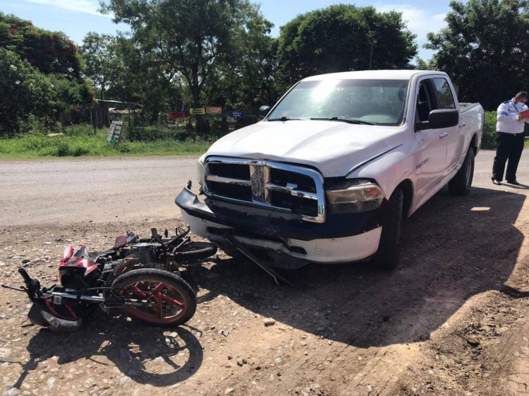 Delicado de salud fue trasladado al hospital General un motociclista, luego de impactarse contra una camioneta que presuntamente le invadió el carril.