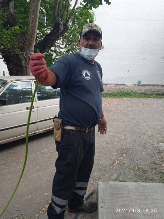 La unidad 26 del departamento de bomberos se movilizó hasta el lugar de lo sucedido y los cuales a los pocos minutos después pudieron capturar a una serpiente la cual se trataba de una «Chicotera» y la cual se encontraba entro los palos y un techo de lámina.