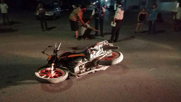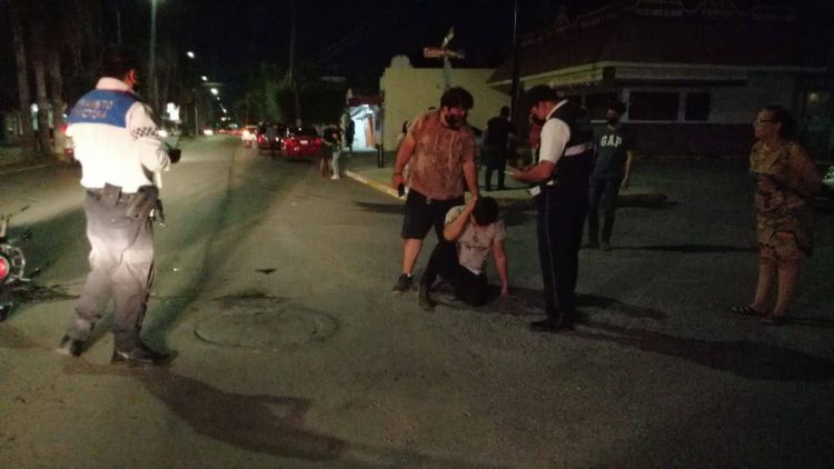 Cd. Victoria, Tam.- De puro milagro se salvó un motociclista luego de cruzar, sin hacer alto, una transitada avenida y luego de a brincar el camellón término rebotando contra un vehículo que conducía una mujer.