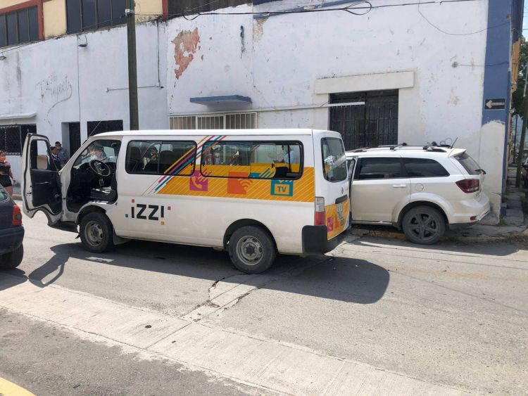 Tras el impacto la camioneta perdió el control y terminó sobre la banqueta, afortunadamente no caminaba ninguna persona por el lugar al momento que ocurrieron los hechos.