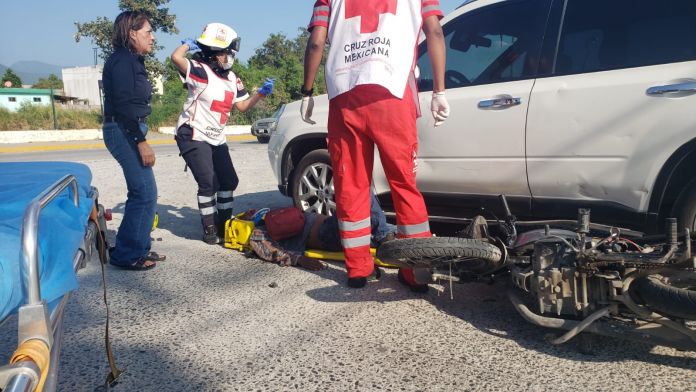Debido a ello el conductor de la moto se estrelló la parte lateral izquierda de la unidad para posteriormente quedar tendido en el pavimento.