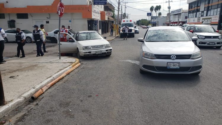 Una mujer que viajaba como copiloto resultó herida, luego de que otro automóvil les invadiera el carril provocando que chocaran contra una nomenclatura.