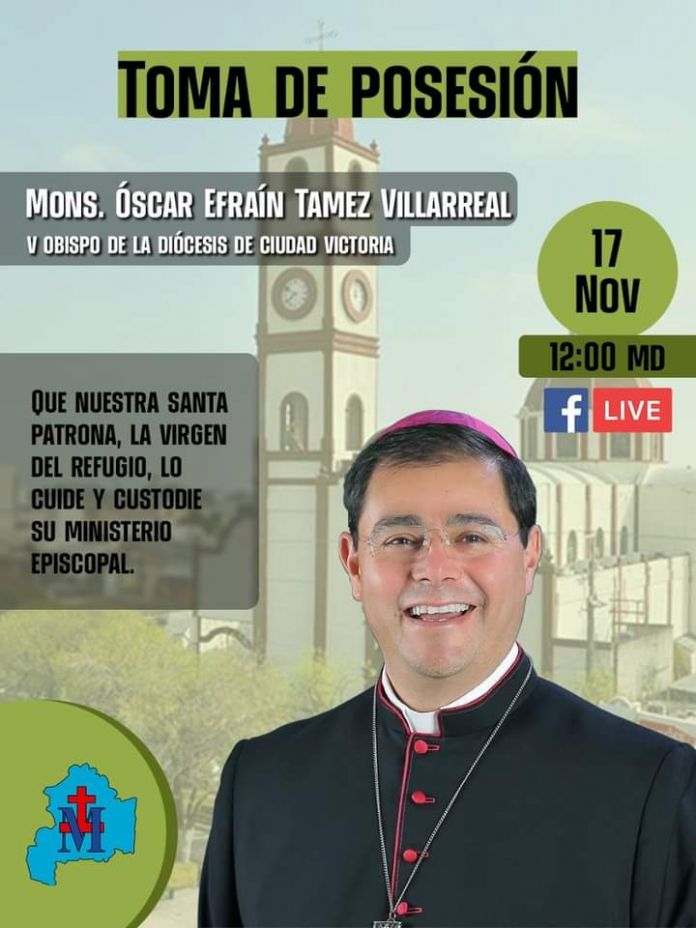 La Diócesis de Ciudad Victoria dio a conocer que será el próximo 17 de noviembre cuando Monseñor Oscar Efraín Tamez Villarreal, tome posesión como Obispo de la Diócesis local.