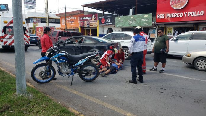 Cd. Victoria, Tam.- Presuntamente cuando el conductor de un automóvil quiso cambiarse de carril término por derribar a un motociclista, el cual por suerte no merito ser trasladado a un hospital.
