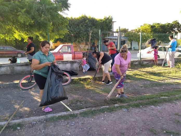 En su visita al parque deportivo de la colonia Satélite el jefe de Deportes del Municipio Carlos Pizaña constató esta acción donde padres de familia e hijos que entrenan fútbol en esa área de activación física, decidieron participar en los trabajos de limpieza iniciados por el municipio.
