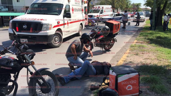 Ensangrentado del rostro fue trasladado al hospital un ciclista, luego de chocar con un repartidor de Didi que manejaba una motocicleta.
