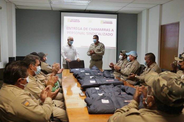 Ciudad Victoria, Tam.- Para garantizar un mejor desempeño en su labor durante la época invernal, la Comisión Municipal de Agua Potable y Alcantarillado (Comapa) Victoria entregó 500 chamarras a personal operativo sindicalizado.