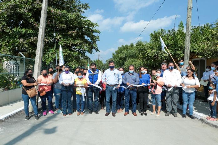 comunitario, el cual apoya con alimentación a las familias que más lo han requerido durante la pandemia; para finalmente trasladarse a la colonia Loma Alta donde inauguró la pavimentación de la calle 20 de octubre, en compañía de los vecinos del sector.