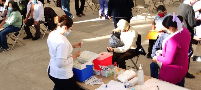 En la jornada de vacunación que inició con algunos retrasos, ya que iniciaron en el Patinadero poco antes de las 8:30 horas, además de la tercera dosis de la vacuna anticovid se aplica la vacuna contra la influenza a los adultos mayores.