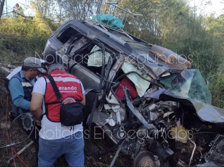 Técnicos en Urgencias Médicas señalaron que al interior de la camioneta Mariner se encontraba una persona del sexo femenino prensada con probable fractura en extremidades.