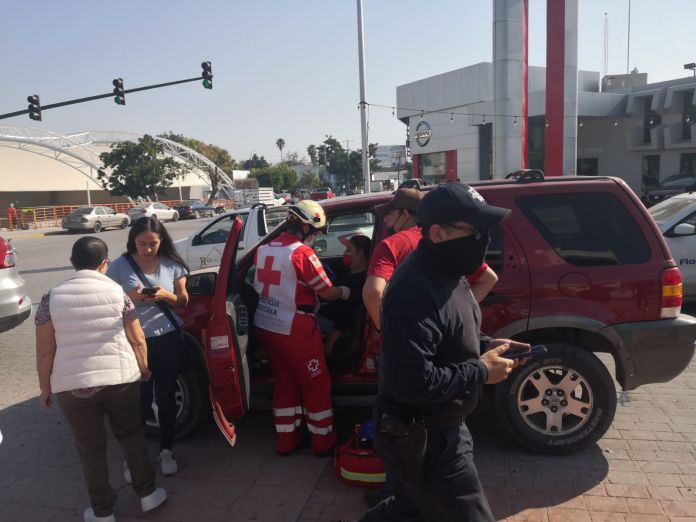 Paramédicos de Cruz Roja atendieron en el lugar a la conductora de una camioneta Ford Escape, la cual se quejaba de un dolor en el cuello.