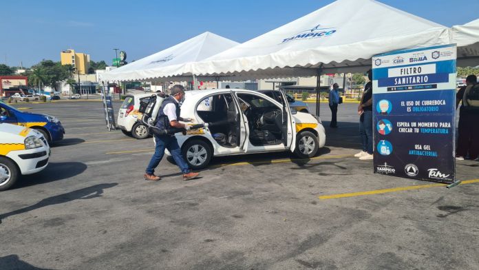 El módulo de sanitización se instaló en el estacionamiento de la tienda comercial Wal-Mart ubicada en la prolongación de la avenida Hidalgo, donde personal de las citadas dependencias, lleva a cabo la desinfección de las unidades de transporte público, taxis y carros de ruta, además de la aplicación de gel, distribución de cubrebocas, toma de temperatura y pega de calcomanías en sitios visibles de las diferentes unidades.