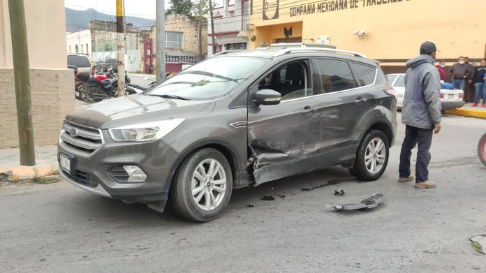 Al llegar a la esquina de la calle Hidalgo la conductora de la Escape ignoró un disco metálico de alto y la camioneta fue impactada por un costado por un automóvil marca Nissan tipo Sentra.