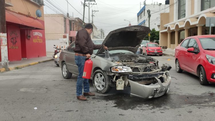 En el accidente registrado en el crucero del 19 Hidalgo el vehículo afectado sufrió un conato de incendio.
