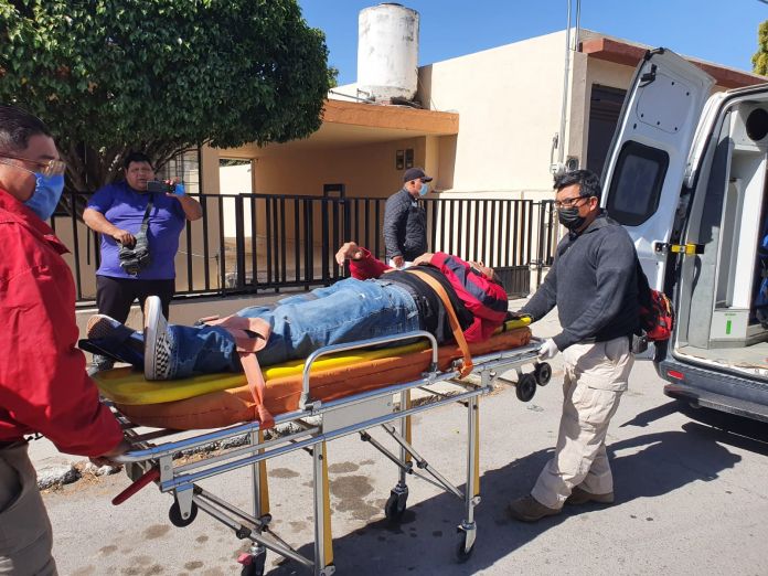 Personal de Protección Civil del Estado se encargó de valorar a la persona, a la cual al final tuvo que ser trasladada a un hospital debido a una lesión en su pierna.