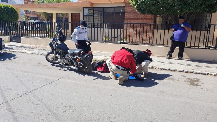 Fue el mismo lesionado quien comentó que a la altura de la calle Abasolo un automóvil salió sin hacer alto obligándolo a realizar una maniobra para evitar chocar, pero para su mala fortuna terminó perdiendo el control y de raspar por el pavimento.