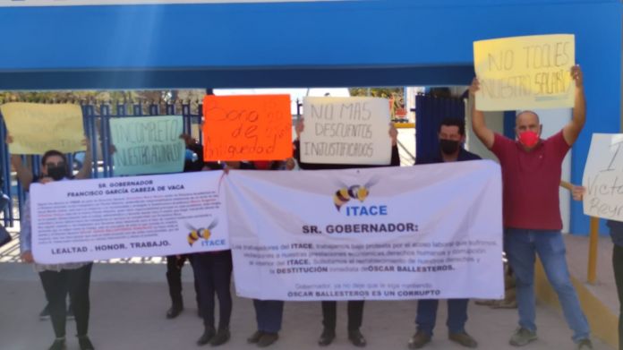 Señalando que han sufrido acoso laboral, violaciones a prestaciones económicas así como a sus derechos humanos, al realizar la protesta en el exterior del Plantel Itace de esta Ciudad Capital, Ricardo Rodríguez pidió la intervención del Gobernador del Estado.