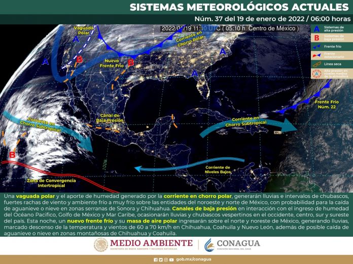Asimismo, con información del Servicio Meteorológico Nacional se detalló que el frente frío número 23 estará acompañado de viento moderado a fuerte de dirección norte.