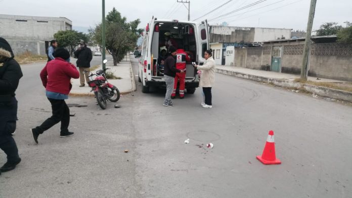 El conductor de una motocicleta resultó lesionado luego de estrellarse en la parte lateral de una camioneta a la cual trataba de rebasar sin darse cuenta que daría la vuelta izquierda.