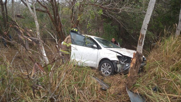 Presuntamente el exceso de velocidad provocó que perdiera en el control y abandonara la superficie de rodamiento, para posteriormente volcar y golpear varios árboles.