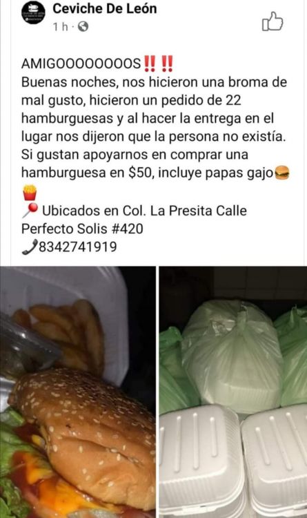 «Si gustan apoyarnos en comprar una hamburguesa en $50, incluye papas gajo».