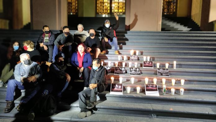 Sumándose a la marcha programada para este día a nivel nacional, colocando veladoras en la escalinata de Palacio de Gobierno, los periodistas se sumaron al reclamo nacional en búsqueda de justicia para los periodistas asesinados.