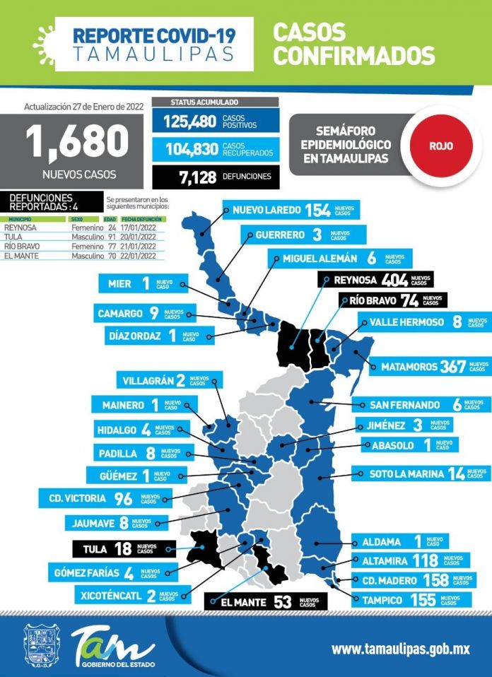 Ciudad Victoria, Tamaulipas.- Debido al aumento en los casos de COVID-19 registrado tras las fiestas decembrinas y ante la rápida propagación de la variante Ómicron, la secretaria de Salud de Tamaulipas, Gloria Molina Gamboa insistió en la importancia de completar el esquema de vacunación y aplicarse la dosis de refuerzo a fin de disminuir complicaciones graves que pudieran derivar en fallecimientos.