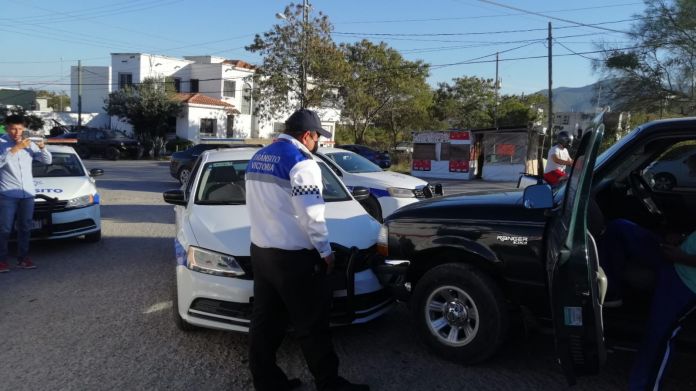 Tras el impacto el conductor de la camioneta perdió el control y se proyectó contra un vehículo Volkswagen Jetta habilitado como patrulla de Tránsito Municipal.