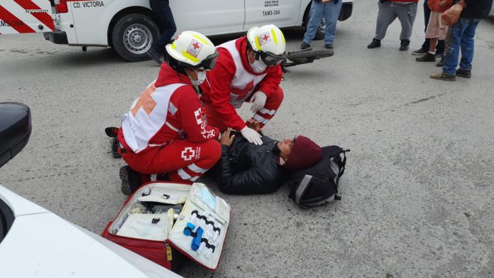 Cd. Victoria, Tam.- Un joven motociclista resultó muy golpeado de su brazo y pierna izquierda, luego de ser impactado por un automóvil el cual presuntamente se pasó el alto.