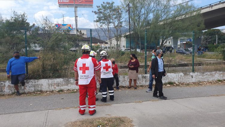 Paramédicos de Cruz Roja se trasladaron hasta el lugar de los hechos para atender a la conducta de un automóvil Ford en color gris.