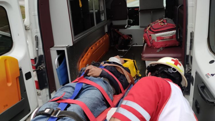 Paramédicos de Cruz Roja se trasladaron hasta el lugar de los hechos para atender a una persona del sexo masculino y el cual maneja una motocicleta de la marca Italika.