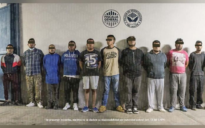 Mediante un comunicado, señaló que los detenidos, todos varones, son Jesús “N”, José Alfredo “N”, Iván “N”, Jonathan Carlos “N”, Víctor “N”, Adrián “N”, Juan Manuel “N”, Eduardo “N” y Edgar Emmanuel “N”.