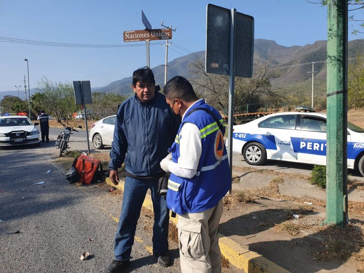 Dijo el perito la pareja iba a bordo de una motocicleta Italika desplazándose por el Libramiento Emilio Portes Gil y al llegar donde empieza el bulevar del mismo nombre, una camioneta Honda los impactó, mandándolos a la carpeta asfáltica.
