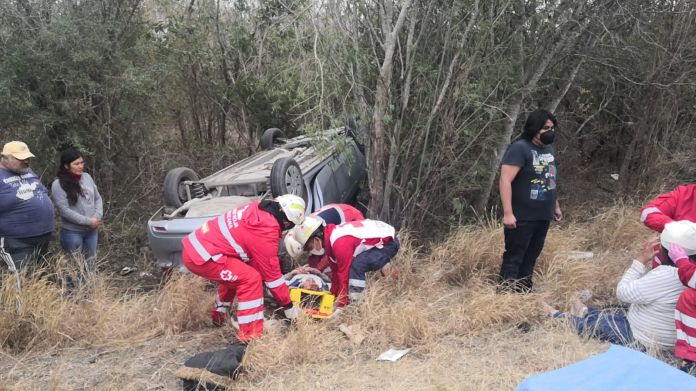 Cd. Victoria, Tam.- Dos personas de la tercera edad que se dirigían a cobrar el apoyo de Bienestar (65 y Más) no llegaron a su destino, luego de que el vehículo en el que viajaban terminó volcado a un lado de la carretera.