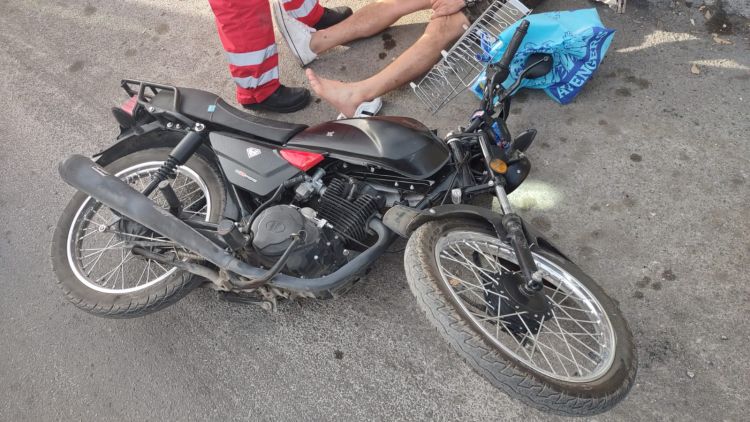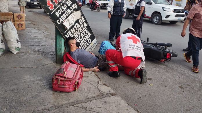 Cd. Victoria, Tam.- El conductor de una motocicleta fue derribado por una camioneta, resultando con lesiones en la mayor parte del cuerpo.
