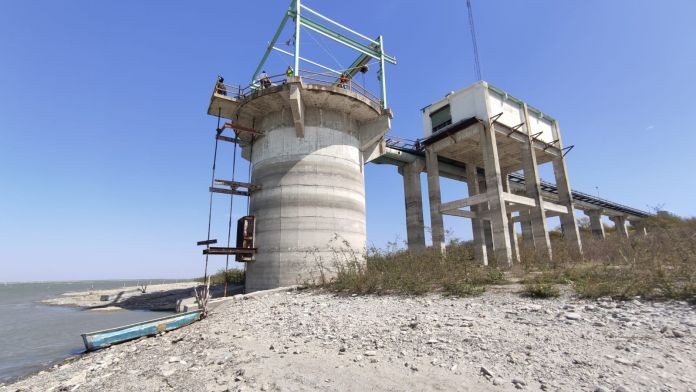 Dijo que la problemática que se presenta en la obra de toma es que estamos en un porcentaje de almacenamiento de la presa de un 30 por ciento.
