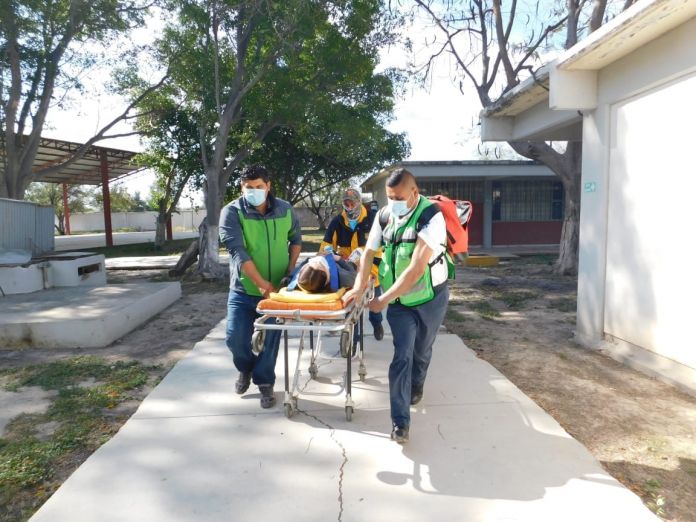 Los alumnos y maestros colaboraron durante la evacuación, donde simularon la atención prehospitalaria a personas lesionadas, además como realizar el debido y correcto traslado de una persona herida.