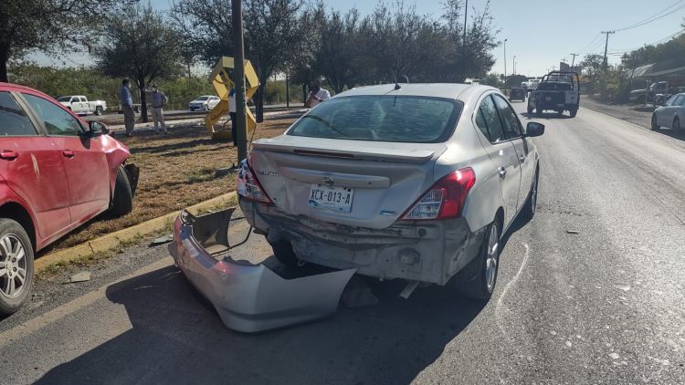 Fue entre la calle 16 y Bulevar Tamaulipas, frente a la agencia Volkswagen, cuando al parecer una distracción ocasionó que se estrellara en la parte posterior de un Nissan versa en color gris, el cual a su vez se proyectó contra otro de la misma marca, pero en color azul que circulaba delante de él.