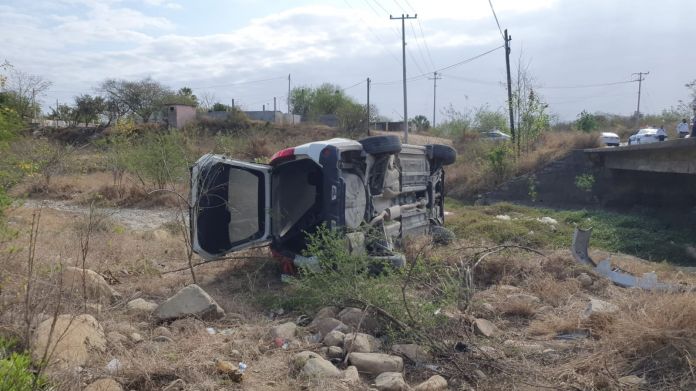Aparentemente tres personas que andaban en estado de ebriedad terminaron volcando su camioneta en el puente del ejido La Misión.