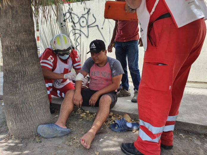 Paramedicos de Cruz Roja fueron los encargados de atender a la persona tras sufrir golpes en el cuerpo.