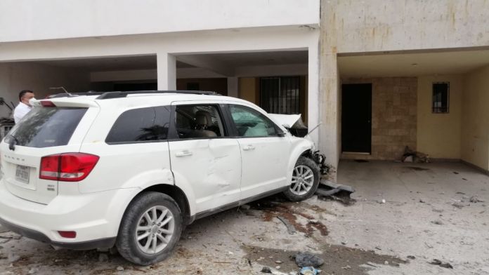 El impacto fue tan fuerte que la barda quedó pulverizada, y la camioneta entró a dicho privado hasta estrellarse contra la columna de una casa.